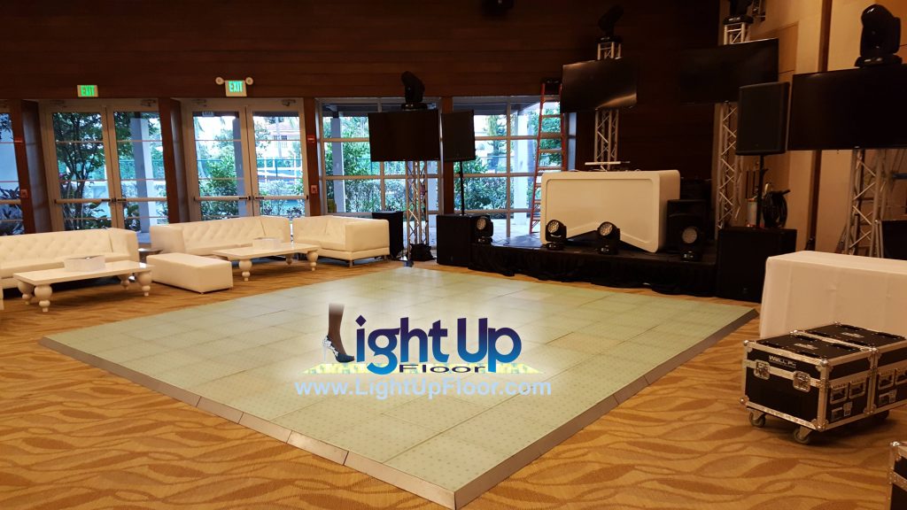 Time to install and remove... The amount of time that it takes for the installation and removal of the floor varies due to venue differences. Please ensure that 1.5 to 3 hours, depending on the size of the floor being installed and the distance between the load-in entrance and the installation area, is available prior to and after your event. (We may be able to accommodate shorter installation or removal constraints... tell us about your parameters so we can give you an accurate quote.)